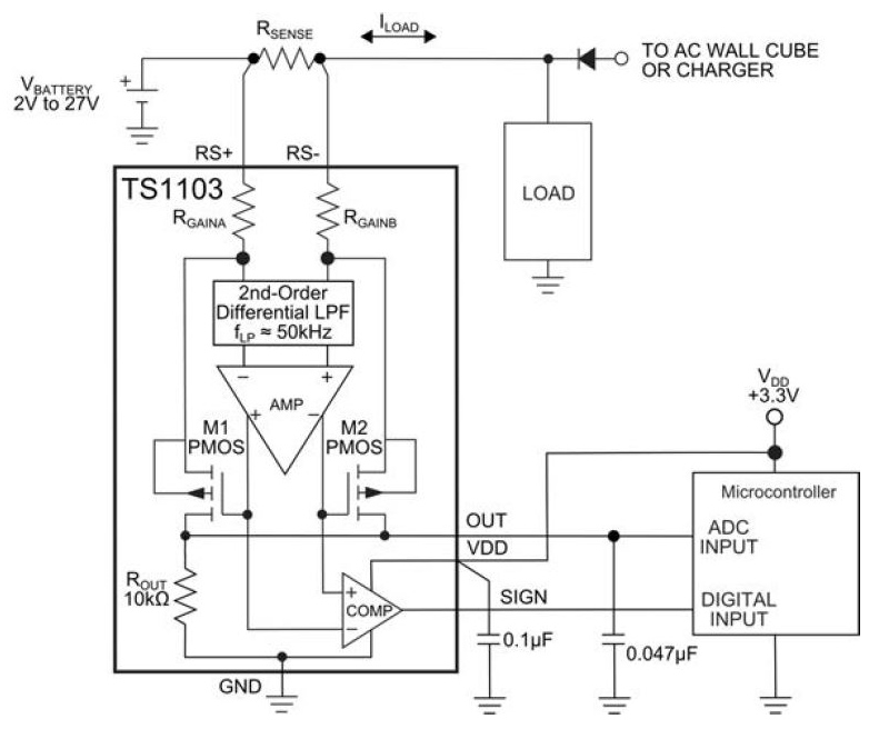 The SOT23 package makes the TS1103 an ideal choice for pcb-area-critical, supply-current-sensitive, high-accuracy current-sense applications in all battery-powered and portable instruments. All TS1103s are specified for operation over the -40°C to 105°C extended temperature range.